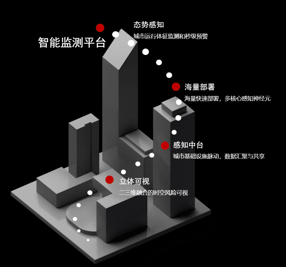提供高效率的智能監測終端管理工具和數據管理服務的平臺,具備設備管理、數據計算,兼容擴展事務規則和模型算法等智能引擎能力,提供數據匯聚分析、能力開放服務的優質聯接體驗;提供了一站式的設備接入、設備管理、數據存儲、監控運維、數據共享等設備管理功能;支持多云部署,平臺API或智能終端底層協議接入能力,“云-端-邊”架構高效協同,極簡接入,設備上電即上云;為城市生命線監測系統(SaaS)提供實時城市運行體征監測數據和秒級預警,助力城市運行“一網統管”,支撐城市健康高效運行和突發事件快速智能響應。